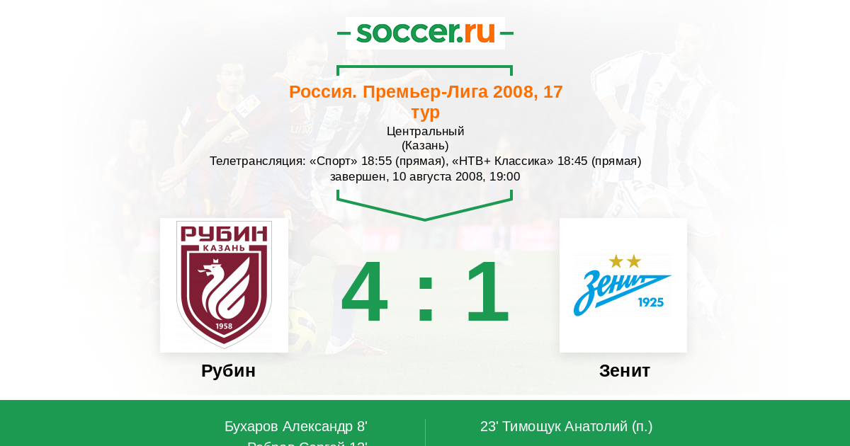 Казань, Центральный Телетрансляция: "Спорт" 18:55 (прямая), "НТВ+ Классика" 18:45 (прямая)
