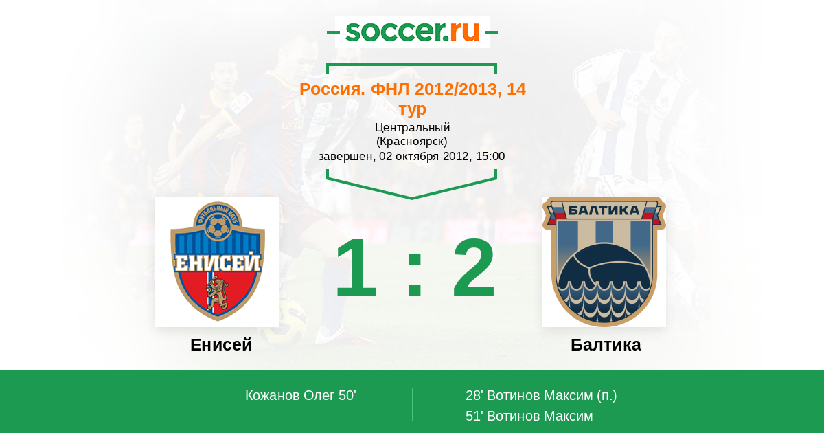 Енисей - Балтика: обзор матча 2 октября 2012