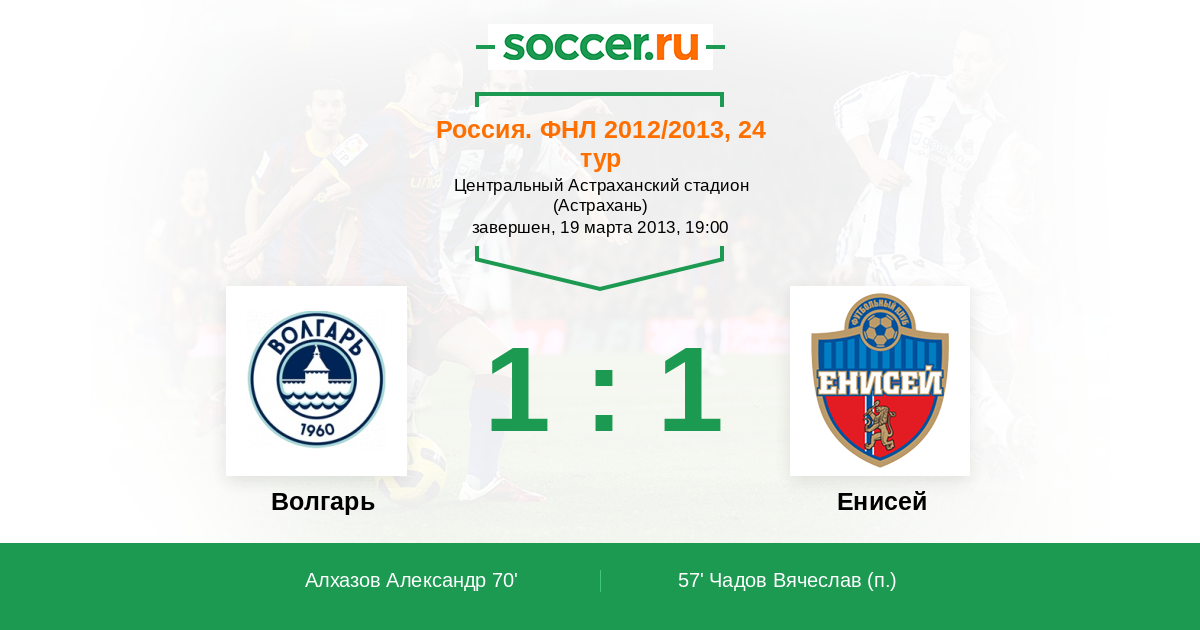 Волгарь - Енисей: обзор матча 19 марта 2013