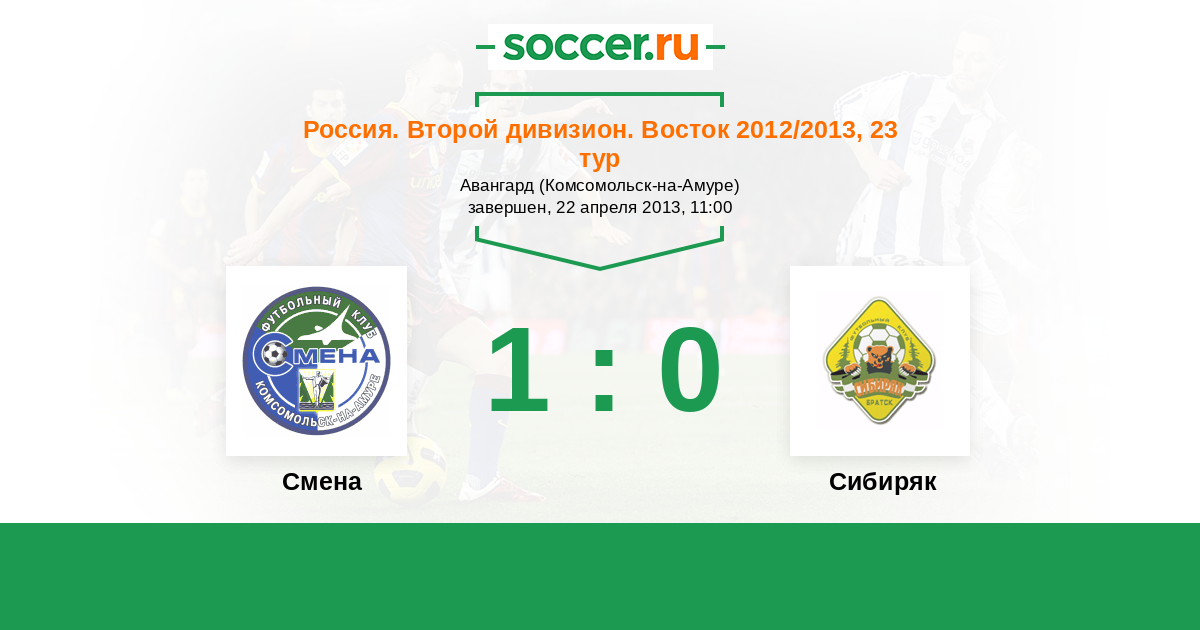 Смена - Сибиряк: обзор матча 22 апреля 2013