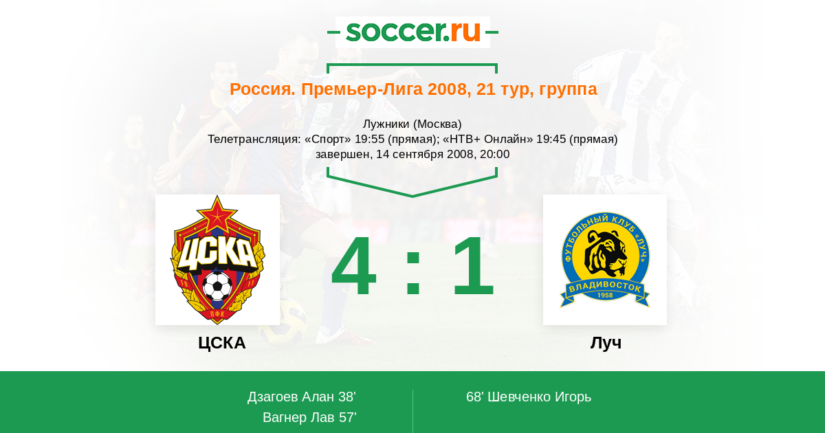 ЦСКА - Луч: обзор матча 14 сентября 2008