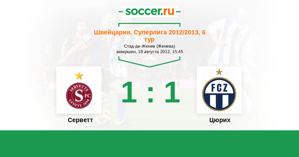 Серветт - Цюрих: обзор матча 19 августа 2012