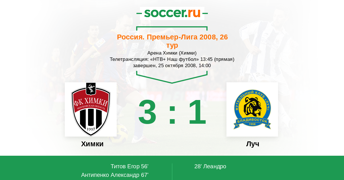 Химки - Луч: обзор матча 25 октября 2008