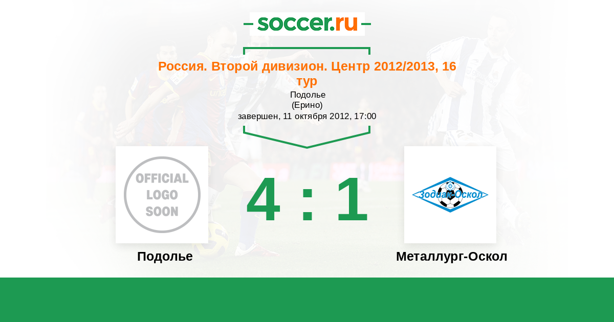 Подолье - Металлург-Оскол: обзор матча 11 октября 2012