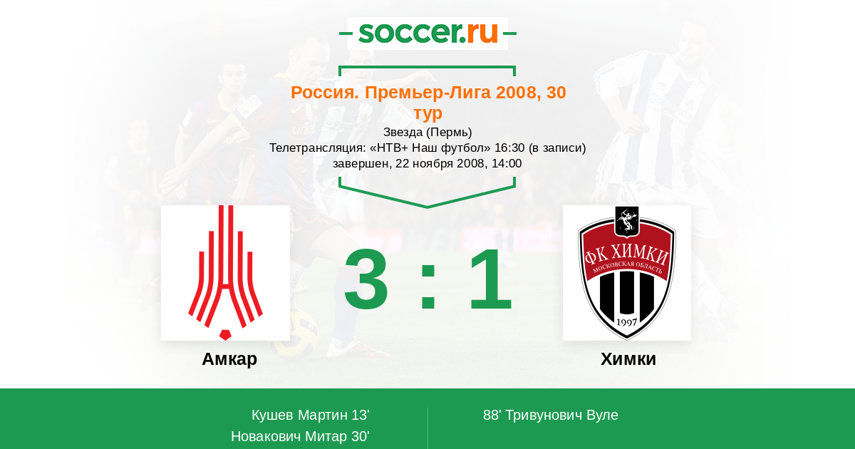 Амкар - Химки: обзор матча 22 ноября 2008