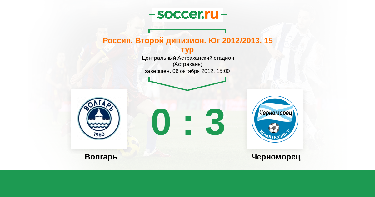 Волгарь - Черноморец: обзор матча 6 октября 2012