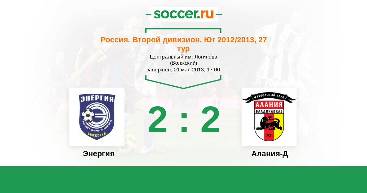 Энергия - Алания-Д: обзор матча 1 мая 2013