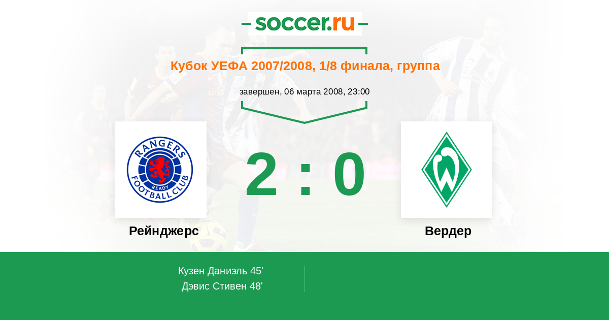 Рейнджерс - Вердер: обзор матча 6 марта 2008