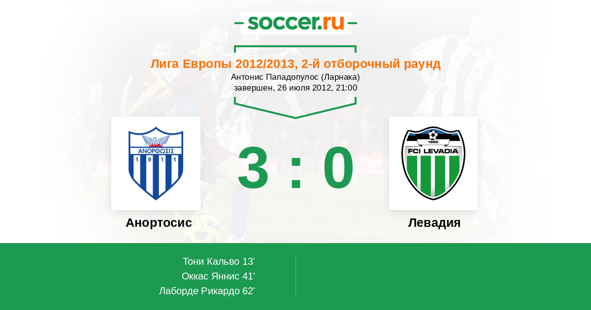 Анортосис - Левадия: обзор матча 26 июля 2012