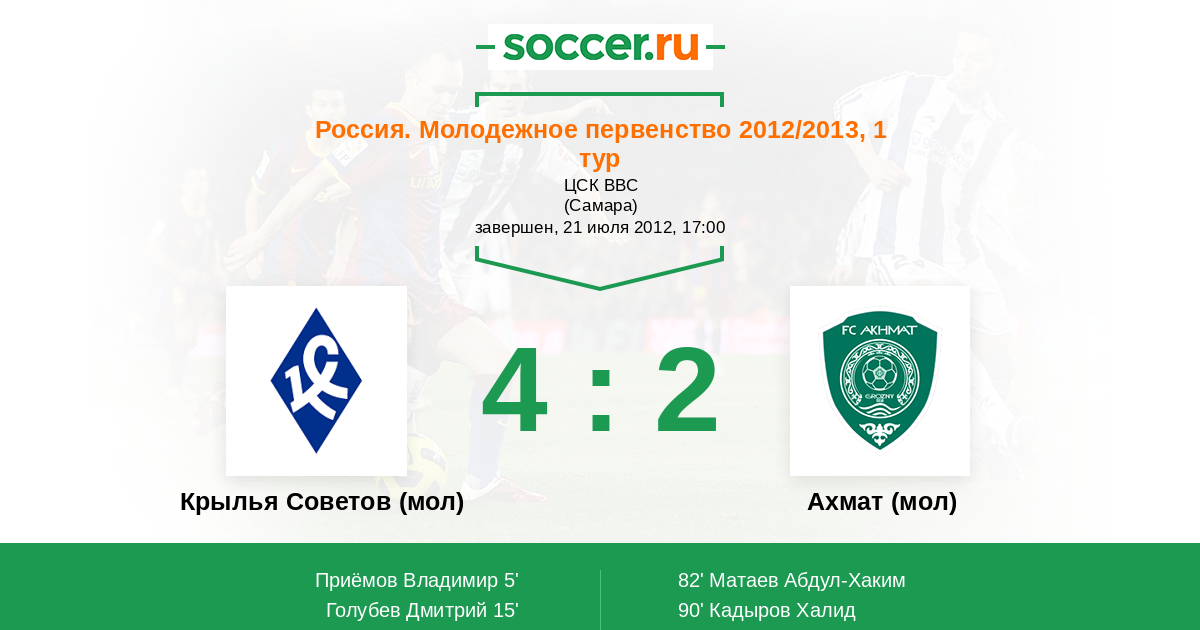Крылья Советов (мол) - Терек (мол): обзор матча 21 июля 2012