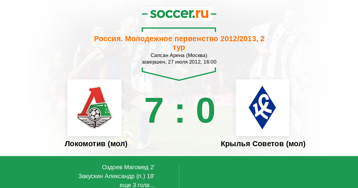 Локомотив (мол) - Крылья Советов (мол): обзор матча 27 июля 2012