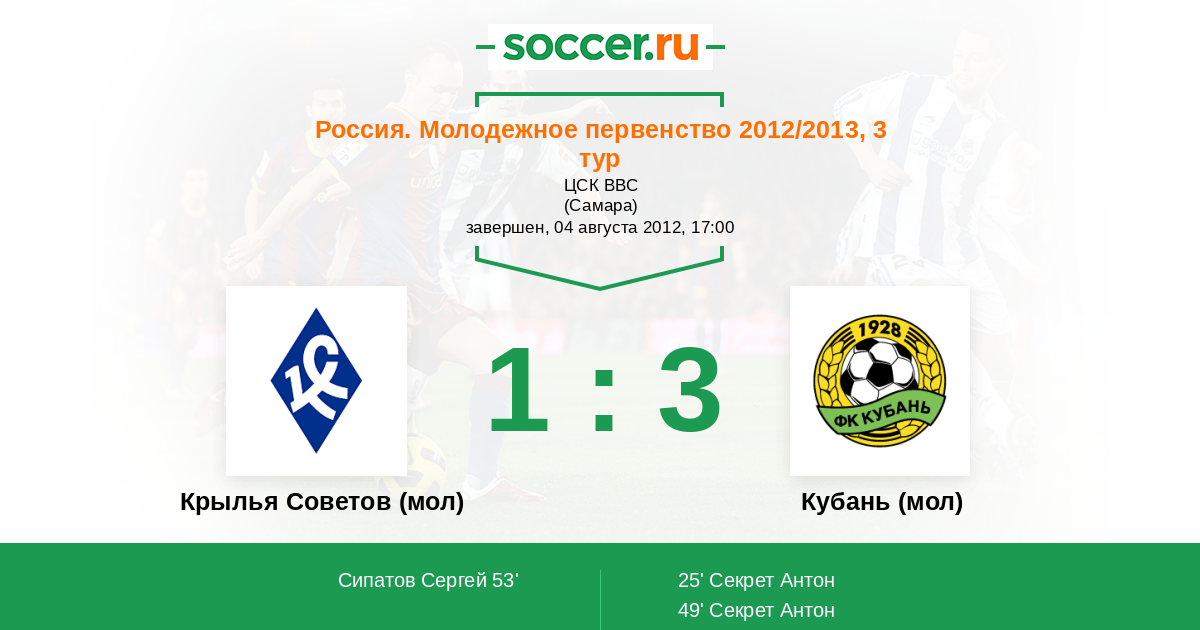 Крылья Советов (мол) - Кубань (мол): обзор матча 4 августа 2012