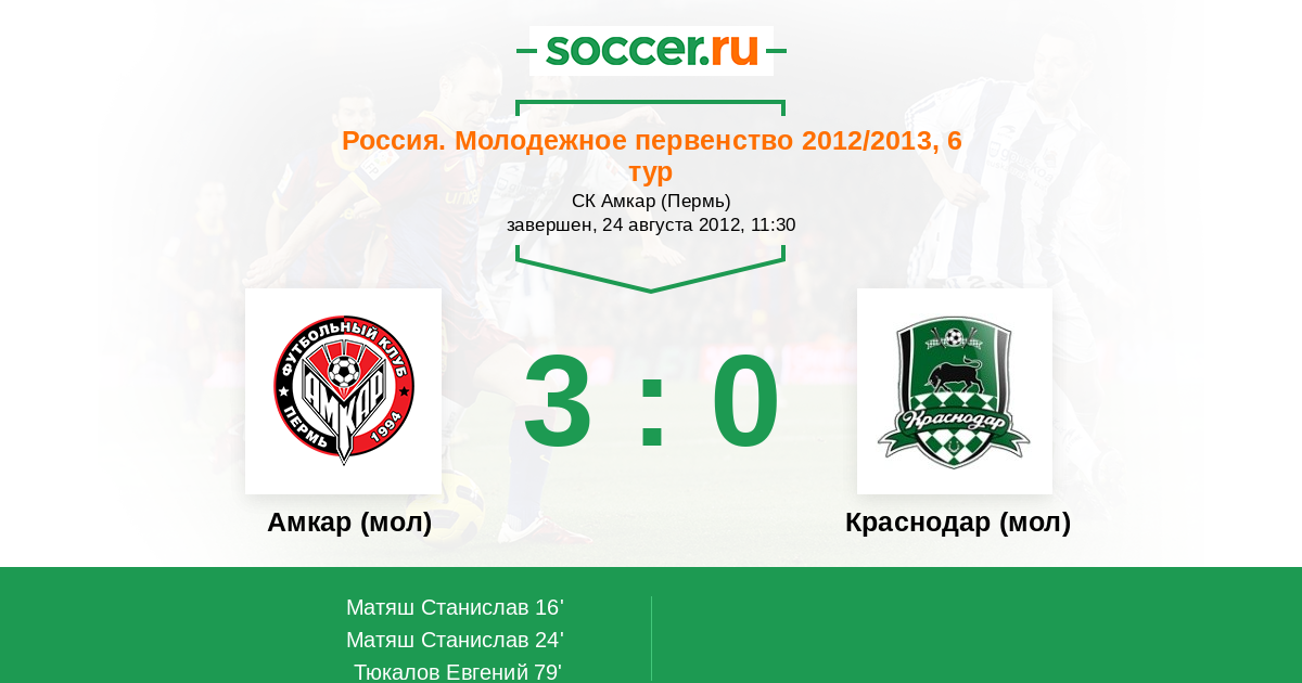 Амкар (мол) - Краснодар (мол): обзор матча 24 августа 2012