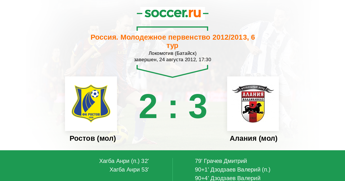 Ростов (мол) - Алания (мол): обзор матча 24 августа 2012