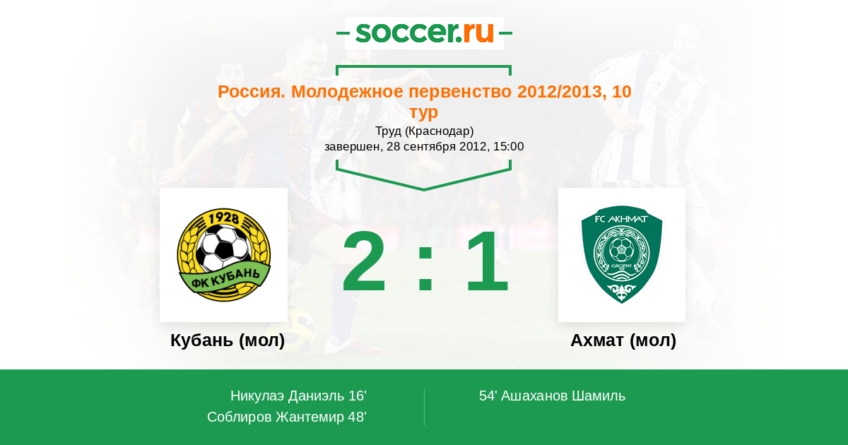 Кубань (мол) - Терек (мол): обзор матча 28 сентября 2012