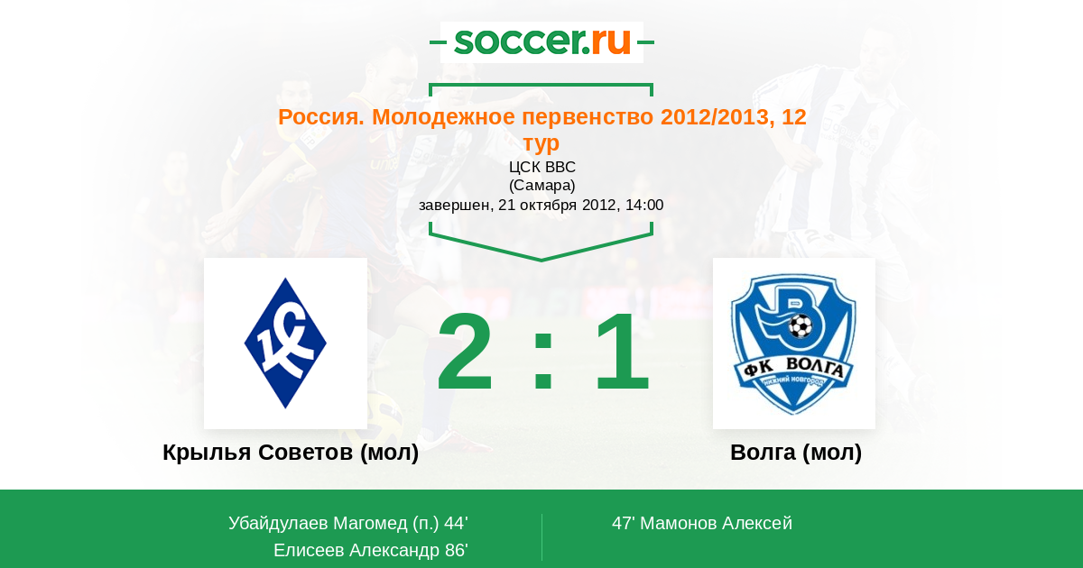 Крылья Советов (мол) - Волга (мол): обзор матча 21 октября 2012