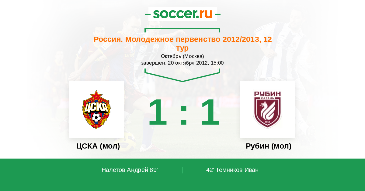 ЦСКА (мол) - Рубин (мол): обзор матча 20 октября 2012