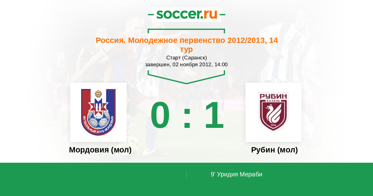 Мордовия (мол) - Рубин (мол): обзор матча 2 ноября 2012