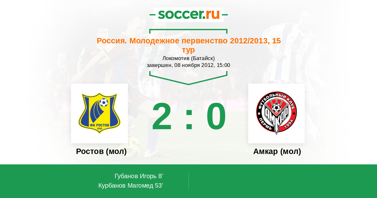 Ростов (мол) - Амкар (мол): обзор матча 8 ноября 2012