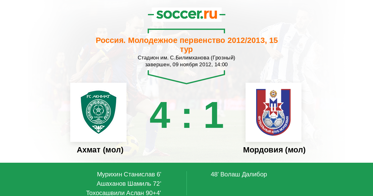 Терек (мол) - Мордовия (мол): обзор матча 9 ноября 2012