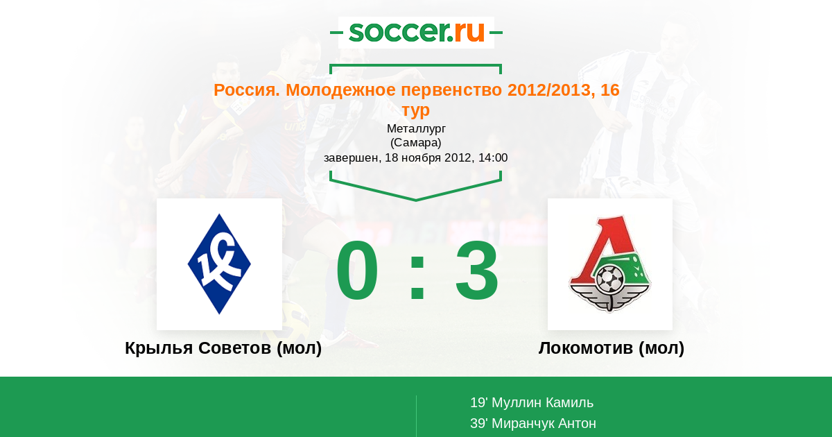 Крылья Советов (мол) - Локомотив (мол): обзор матча 18 ноября 2012