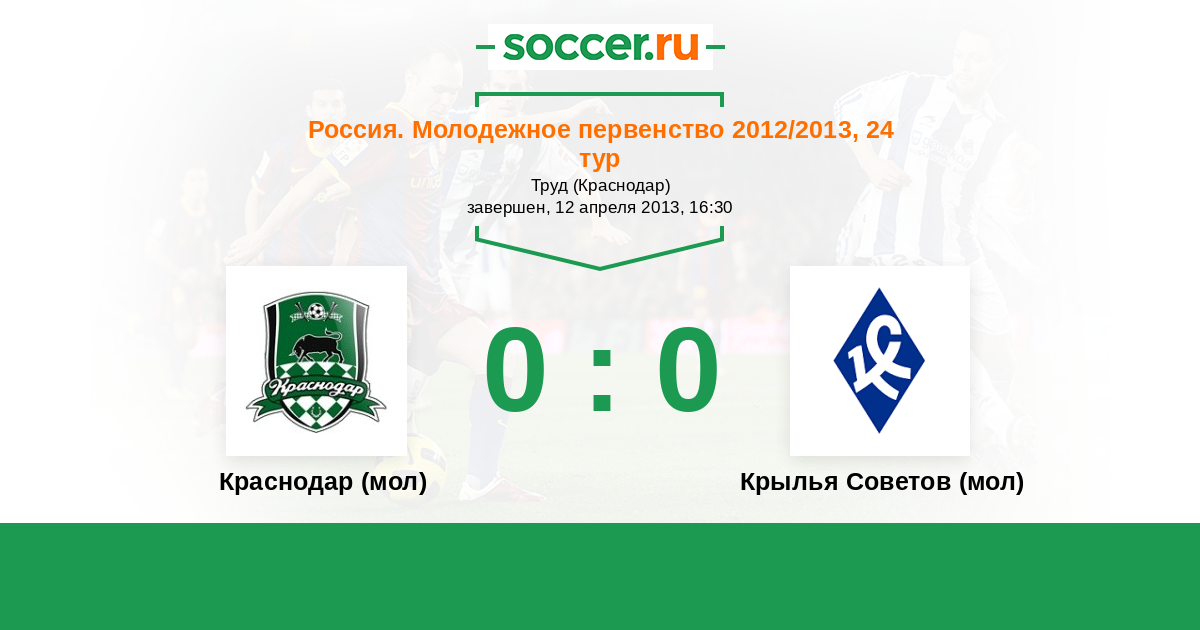 Краснодар (мол) - Крылья Советов (мол): обзор матча 12 апреля 2013