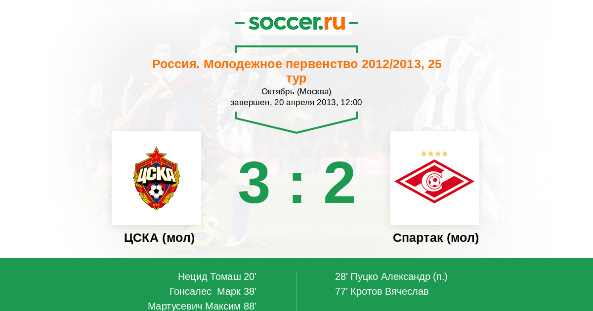 ЦСКА (мол) - Спартак (мол): обзор матча 20 апреля 2013
