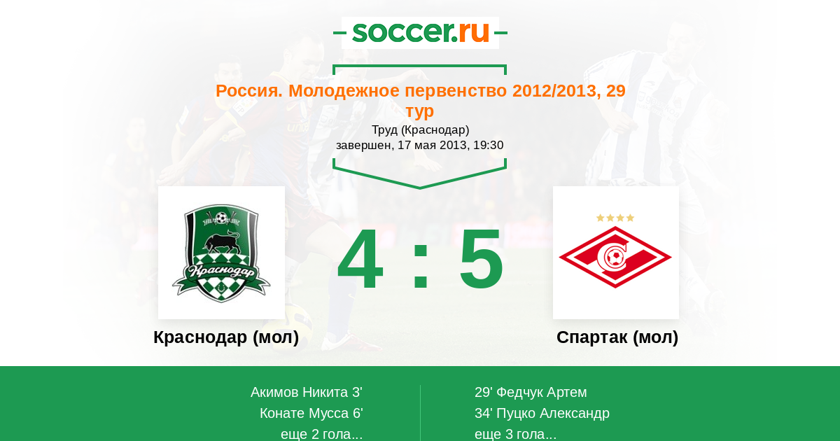 Краснодар (мол) - Спартак (мол): обзор матча 17 мая 2013