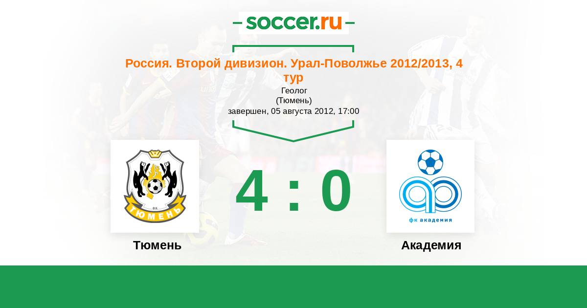 Тюмень - Академия: обзор матча 5 августа 2012
