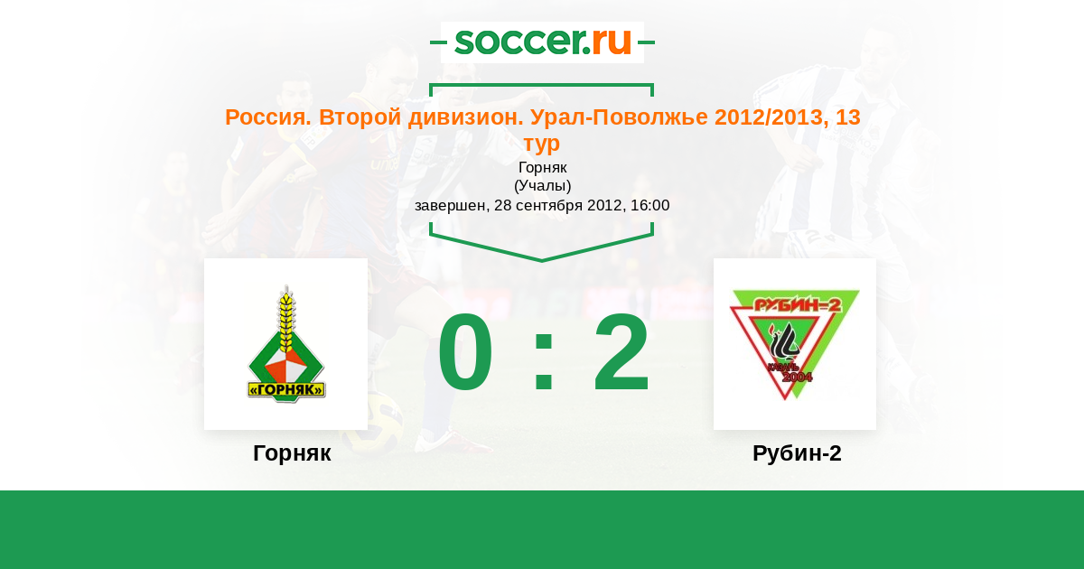 Горняк - Рубин-2: обзор матча 28 сентября 2012