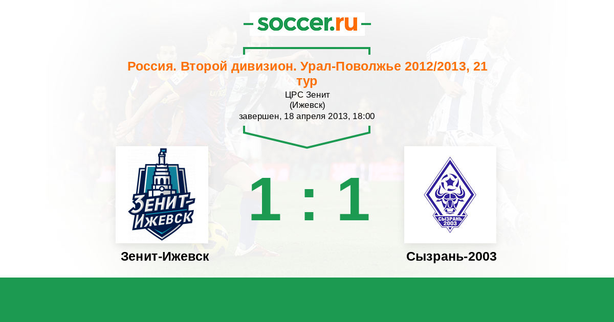 Зенит-Ижевск - Сызрань-2003: обзор матча 18 апреля 2013