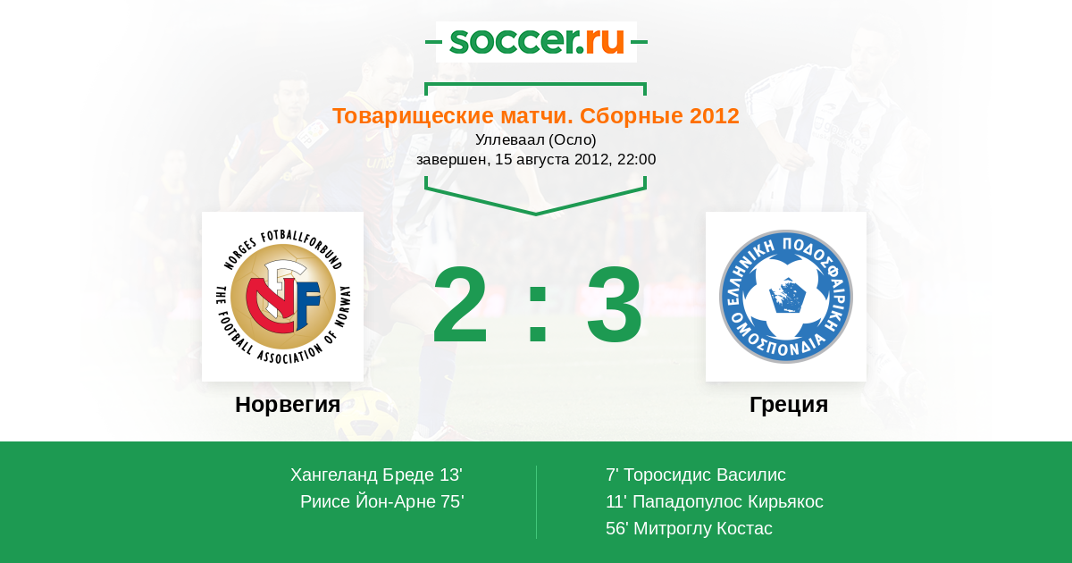 Норвегия - Греция: обзор матча 15 августа 2012