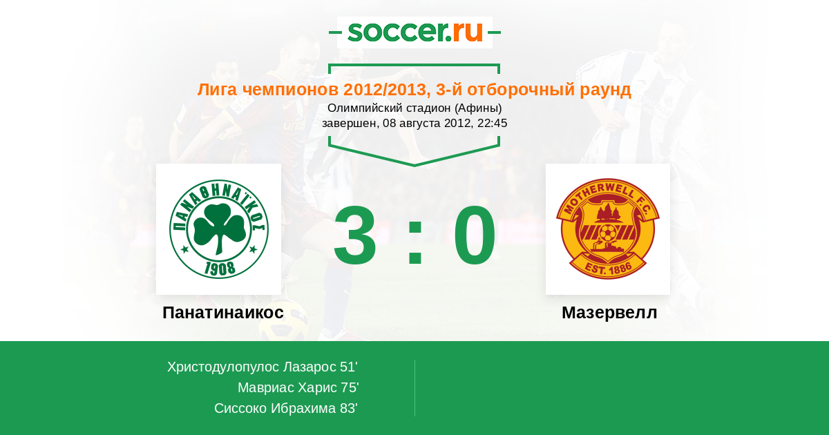 Панатинаикос - Мазервелл: обзор матча 8 августа 2012