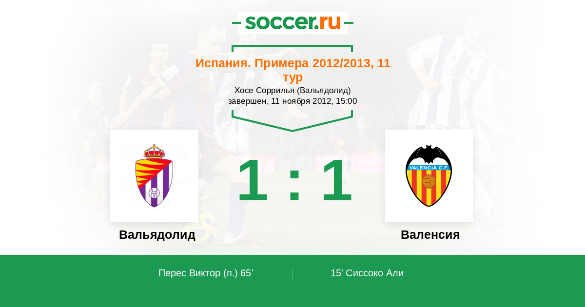 Вальядолид - Валенсия: обзор матча 11 ноября 2012