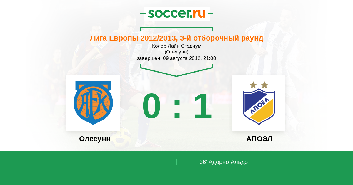 Олесунн - АПОЭЛ: обзор матча 9 августа 2012
