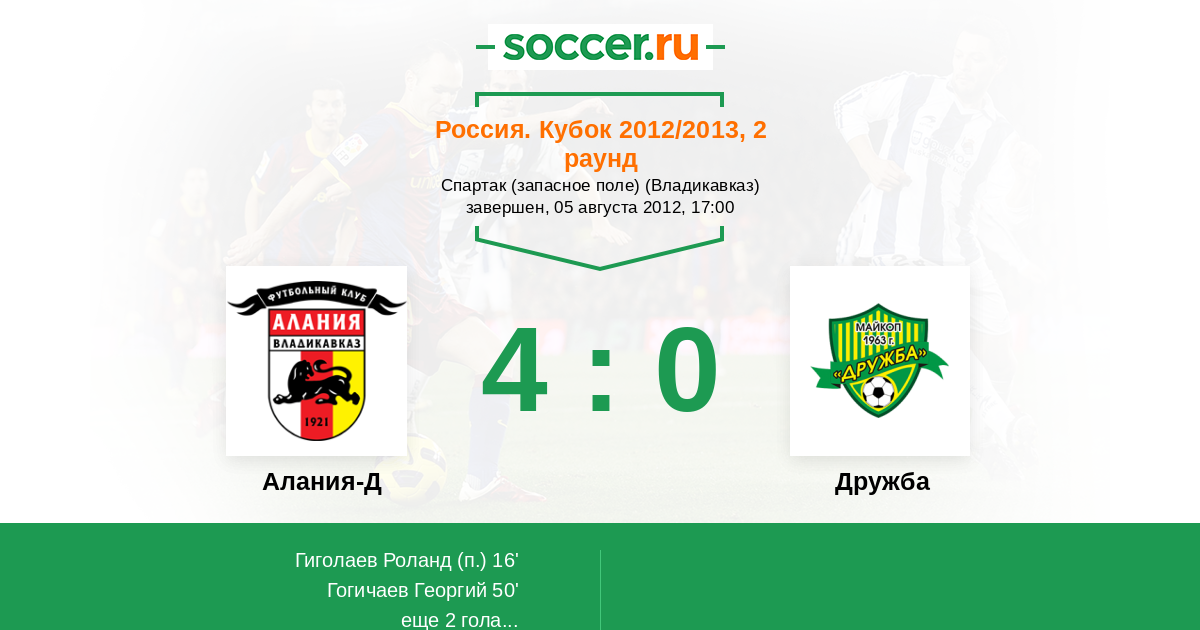 Алания-Д - Дружба: обзор матча 5 августа 2012