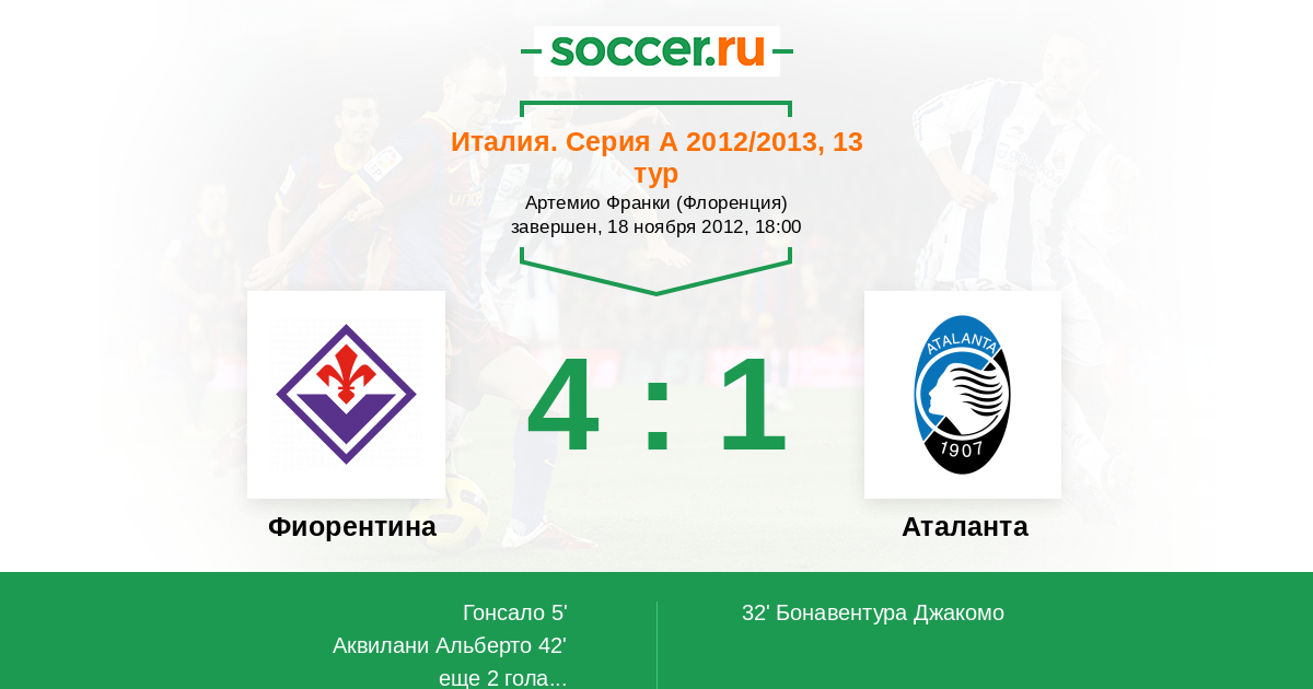 Фиорентина - Аталанта: обзор матча 18 ноября 2012