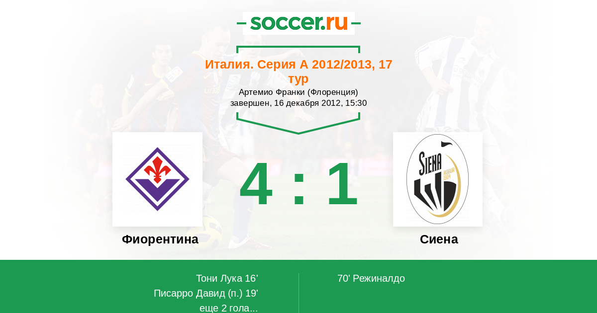Фиорентина - Сиена: обзор матча 16 декабря 2012