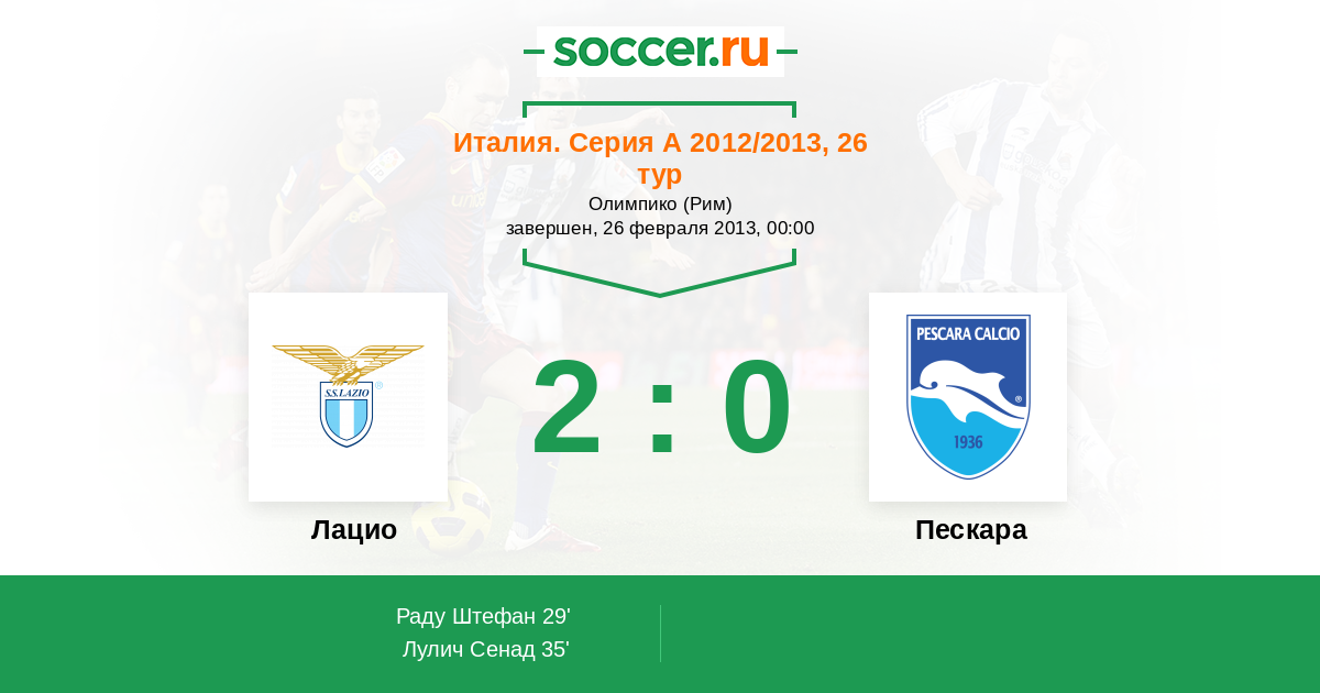 Лацио - Пескара: обзор матча 26 февраля 2013