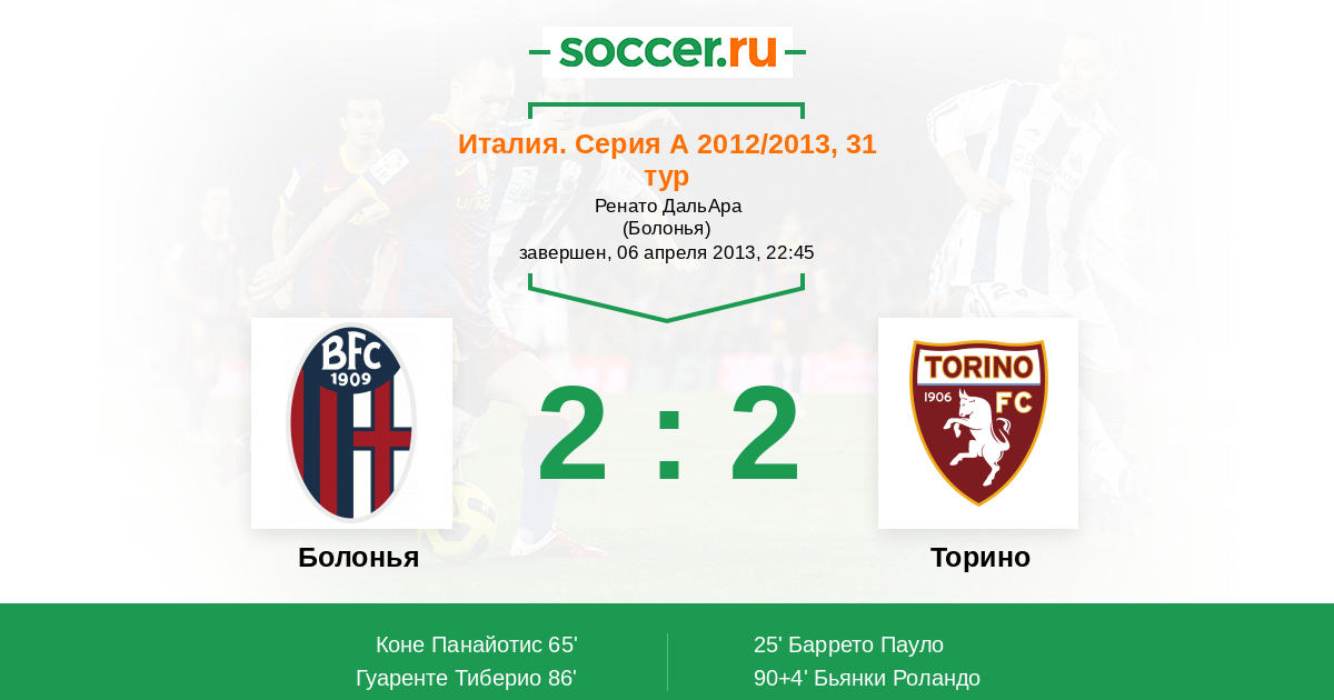 Болонья - Торино: обзор матча 6 апреля 2013