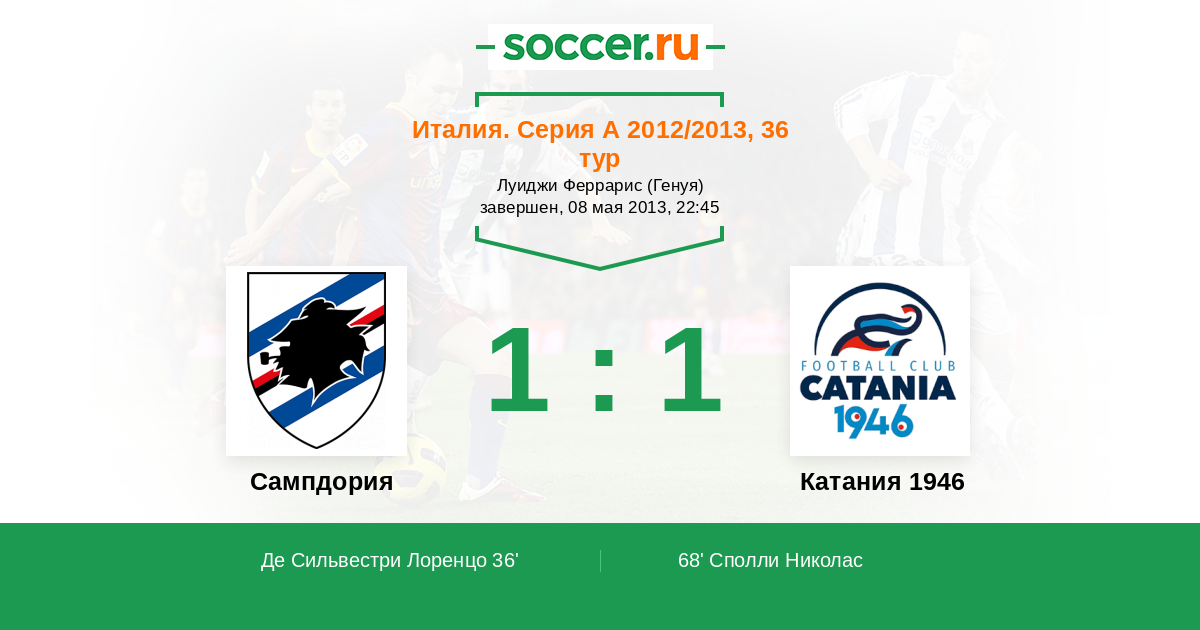 Сампдория - Катания 1946: обзор матча 8 мая 2013