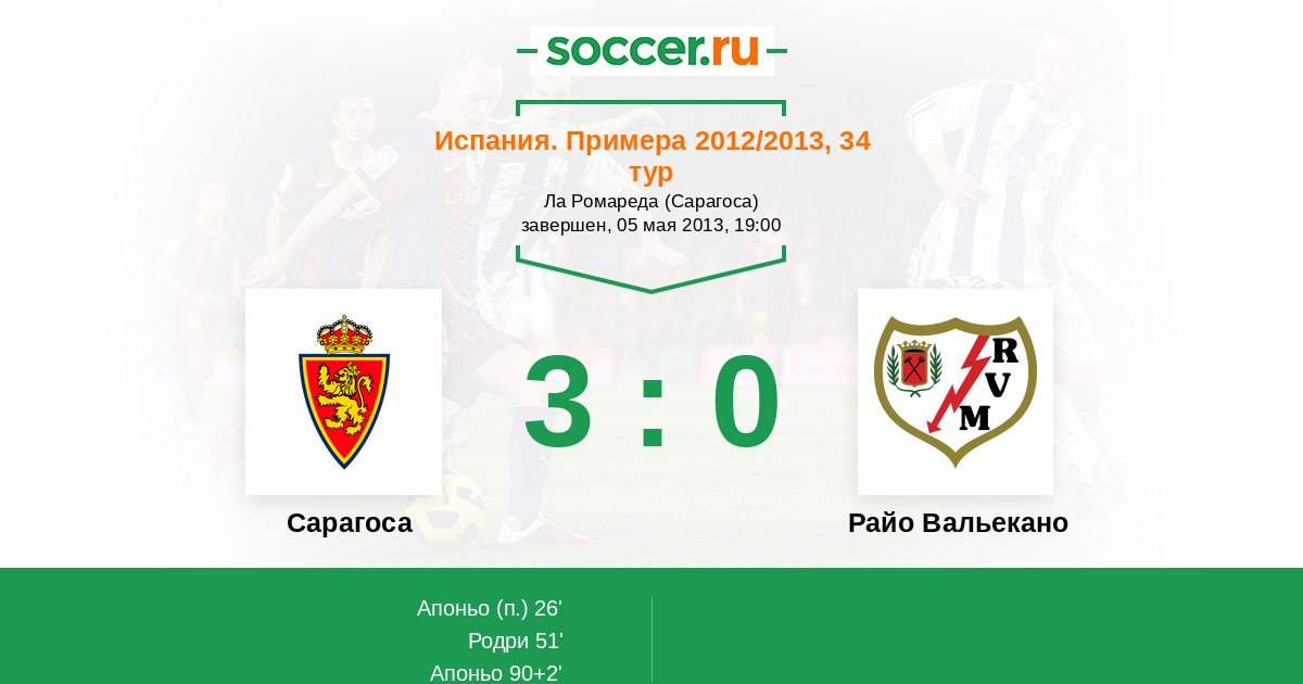 Сарагоса - Райо Вальекано: обзор матча 5 мая 2013