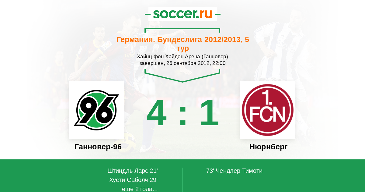 Ганновер-96 - Нюрнберг: обзор матча 26 сентября 2012