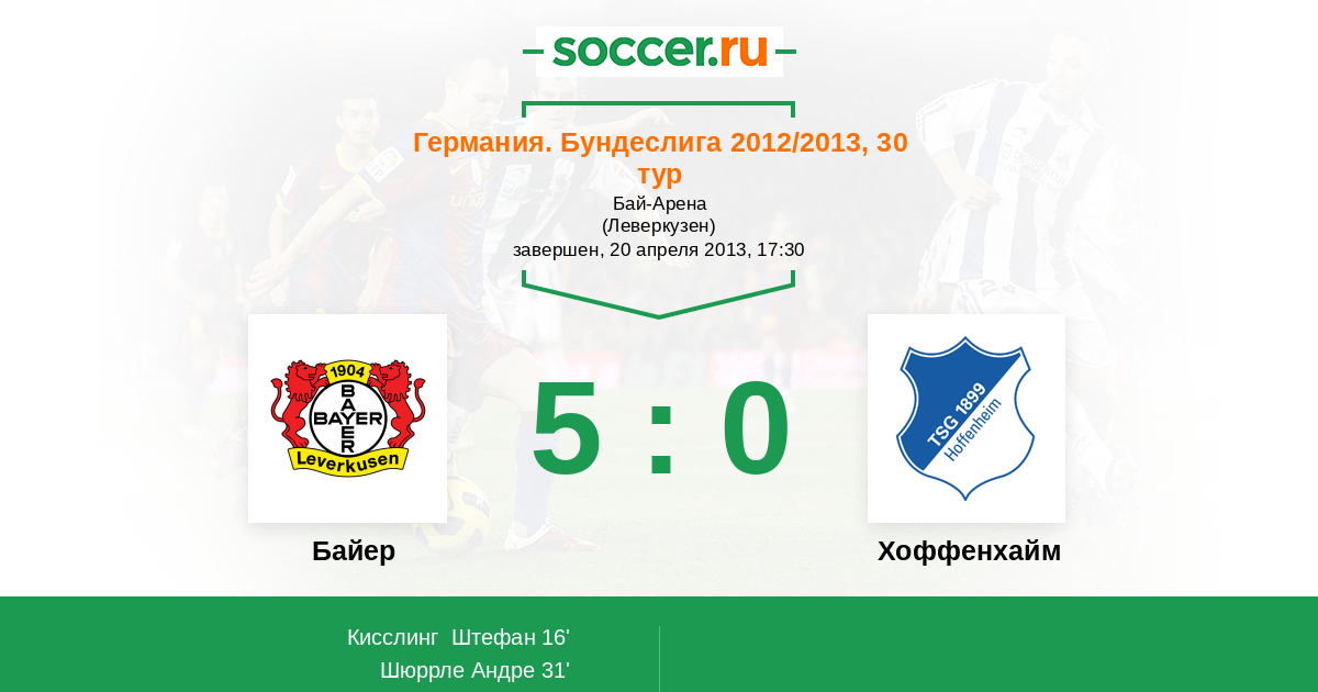 Байер - Хоффенхайм: обзор матча 20 апреля 2013