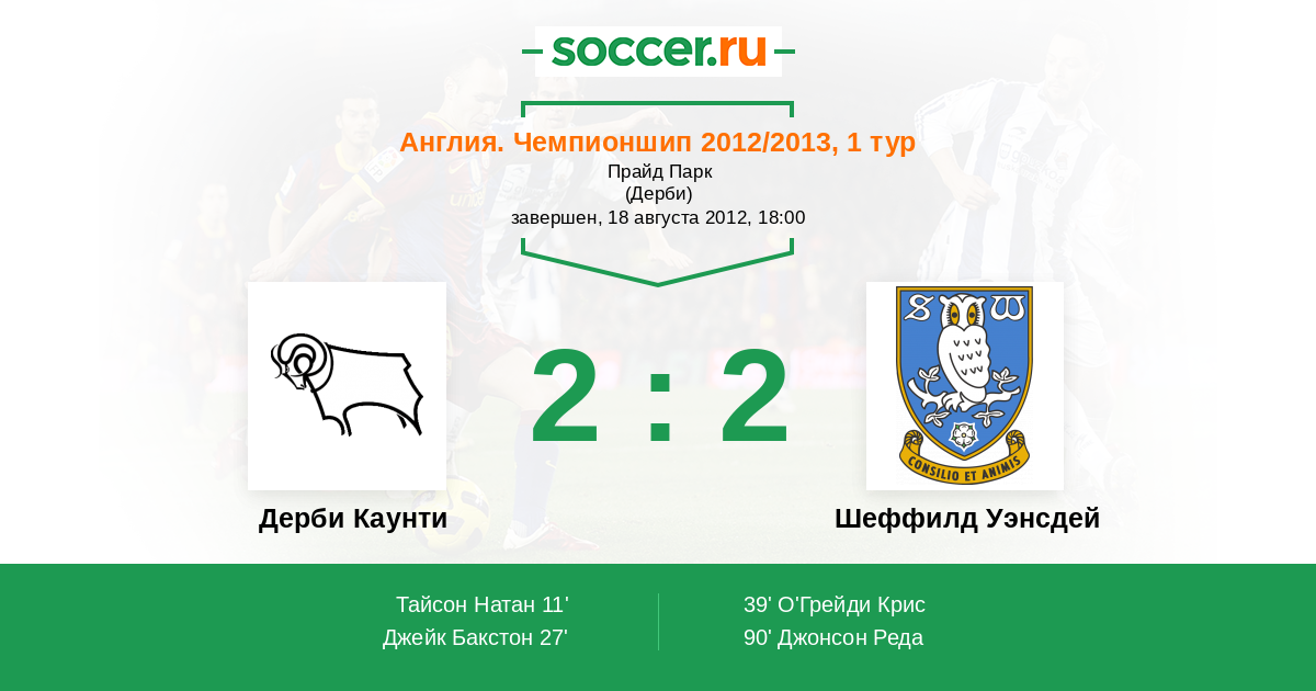 Дерби Каунти - Шеффилд Уэнсдей: обзор матча 18 августа 2012