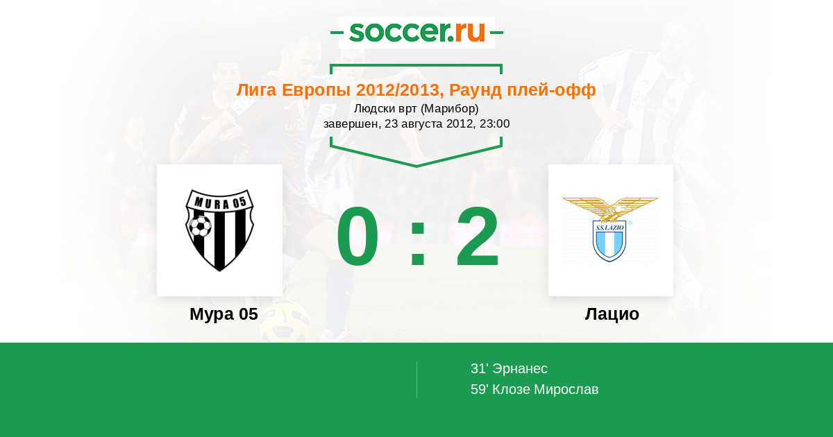 Мура 05 - Лацио: обзор матча 23 августа 2012