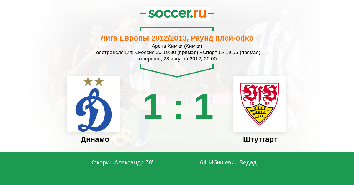 Динамо - Штутгарт: обзор матча 28 августа 2012