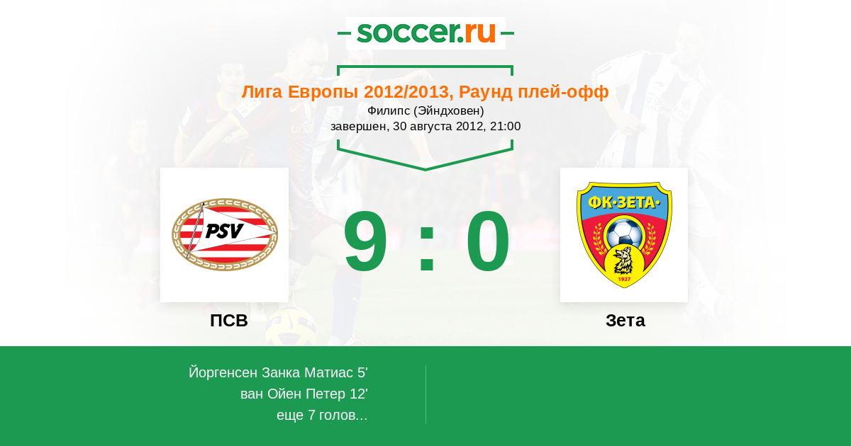 ПСВ - Зета: обзор матча 30 августа 2012