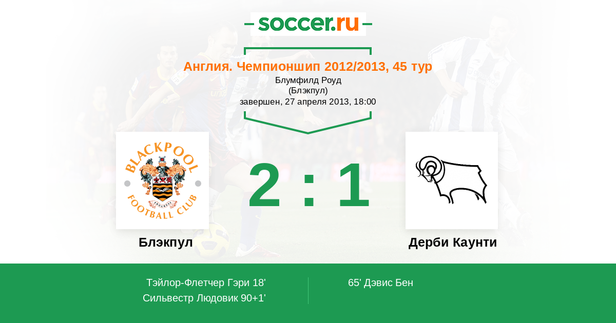 Блэкпул - Дерби Каунти: обзор матча 27 апреля 2013