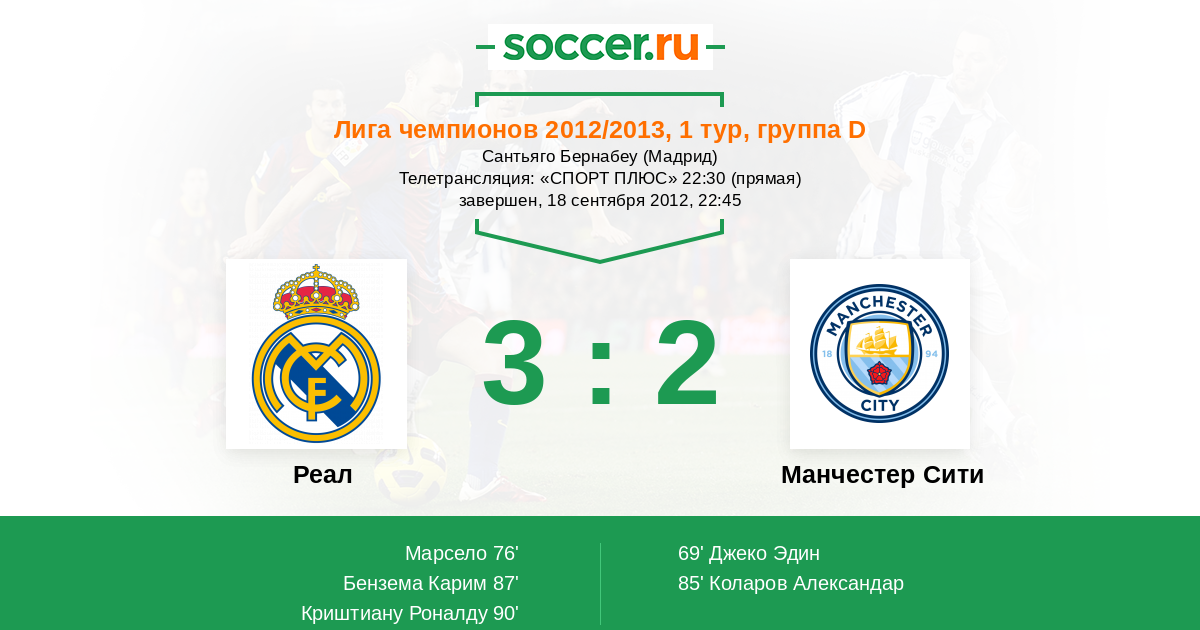 Реал - Манчестер Сити: обзор матча 18 сентября 2012